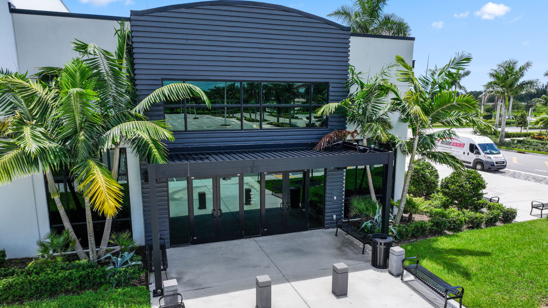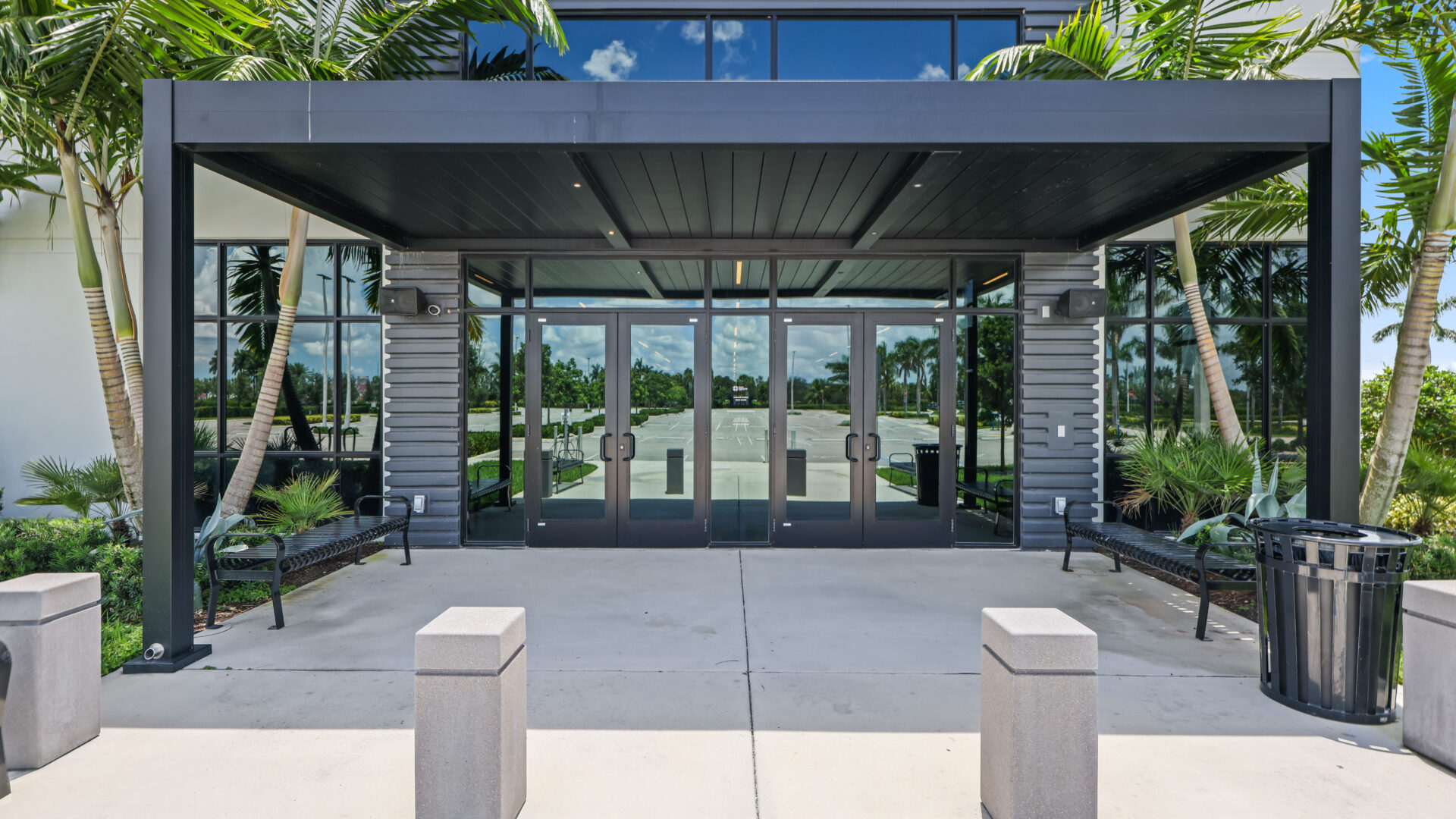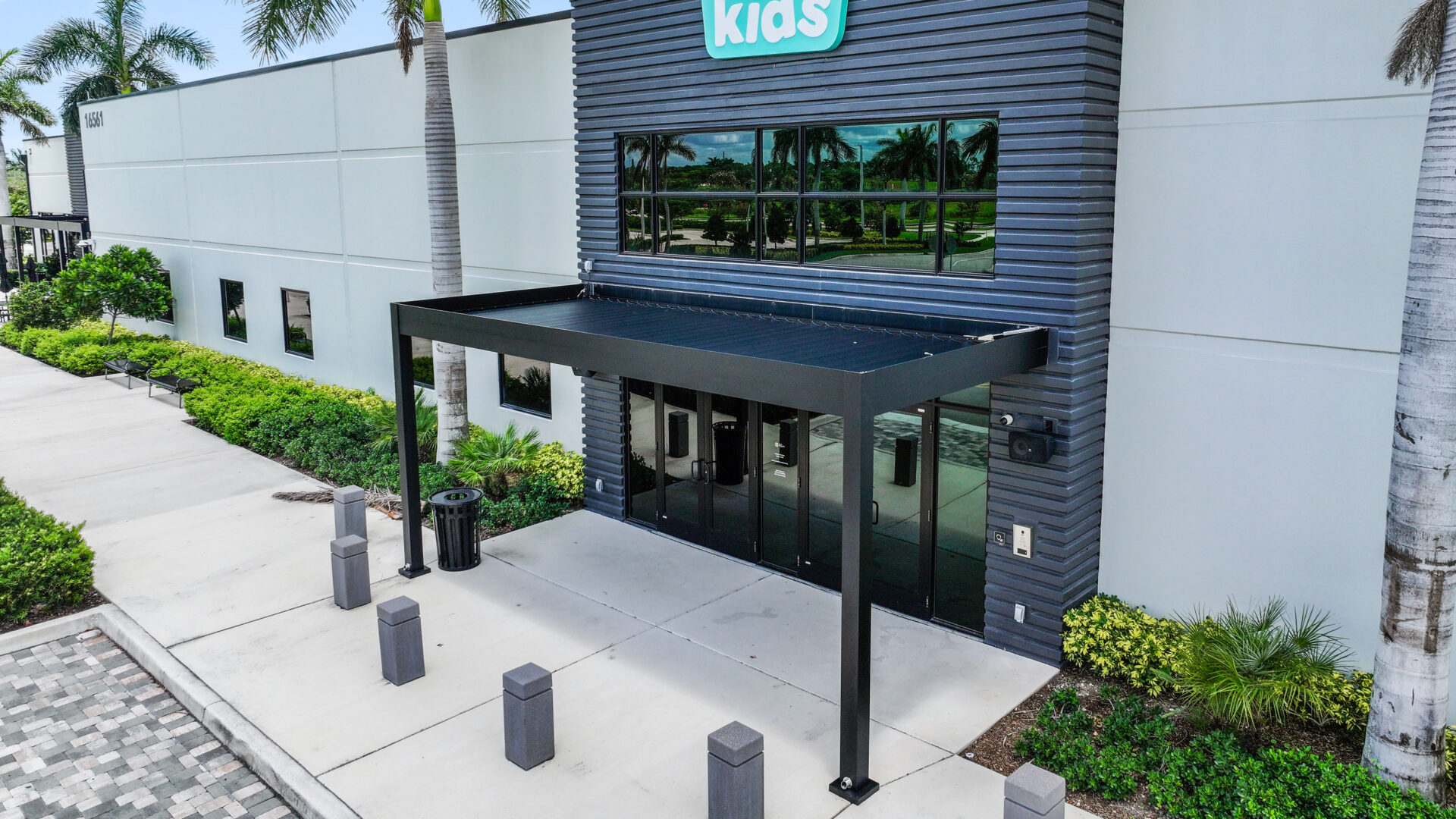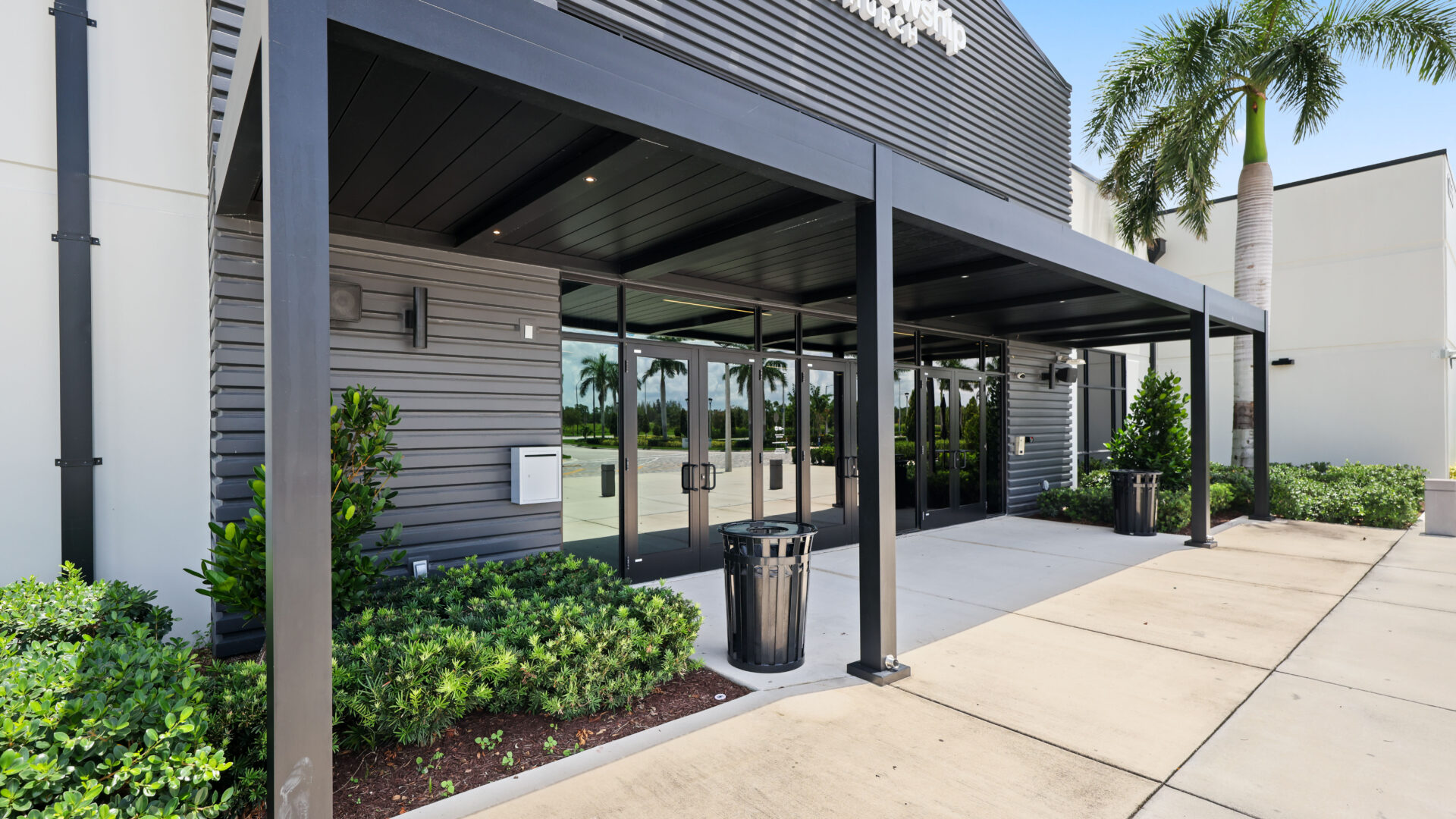 SYZYGY Global designed a site-specific engineered R-Blade pergola that brings clean lines, durable aluminum construction, and concealed marine-grade stainless steel hardware to the space. The motorized dual-walled louvers adjust at the touch of a button or through automated sensors, giving the church effortless control over sunlight, shade, and rain. Fully extruded integrated gutters manage South Florida downpours while maintaining a refined, unobtrusive profile.