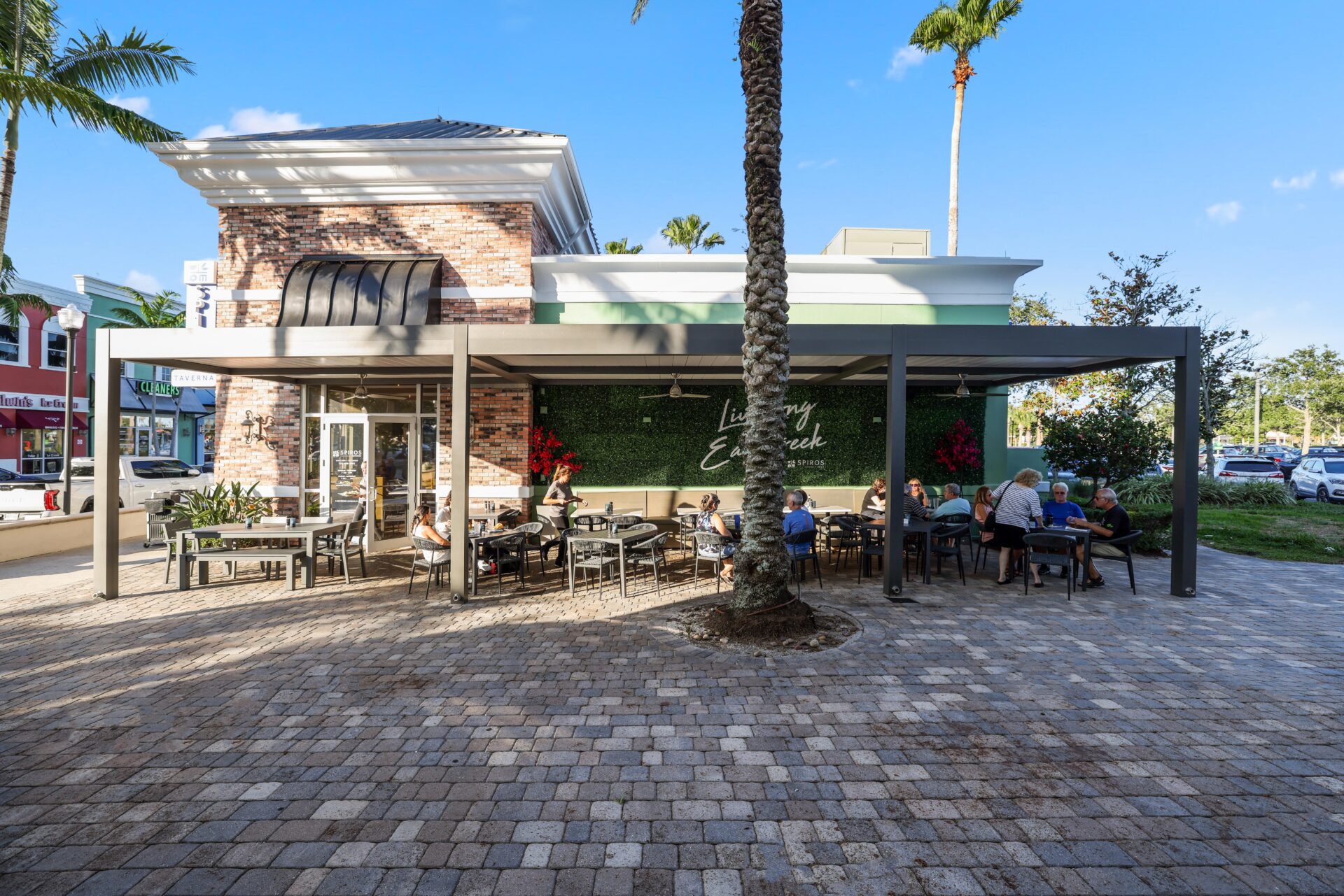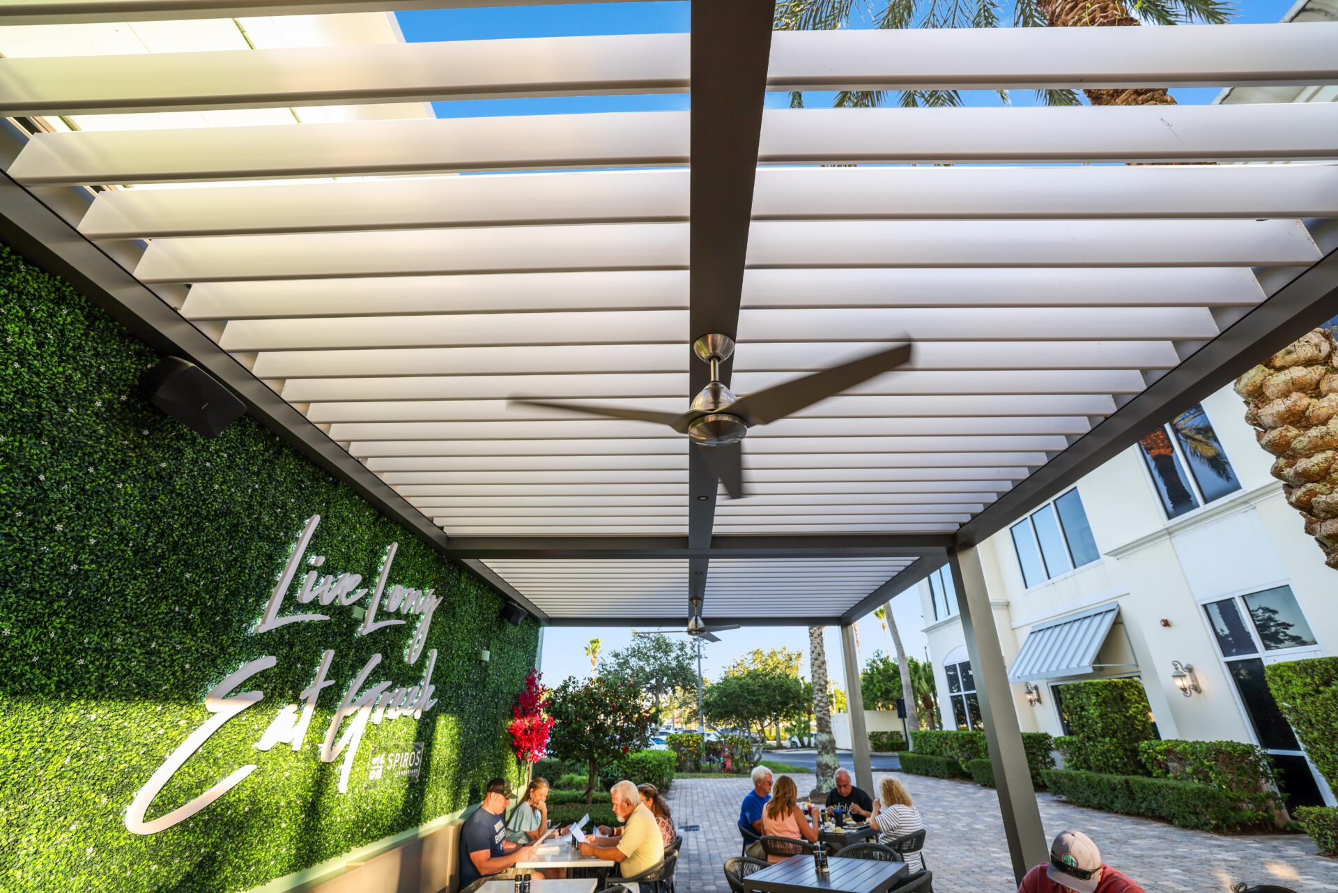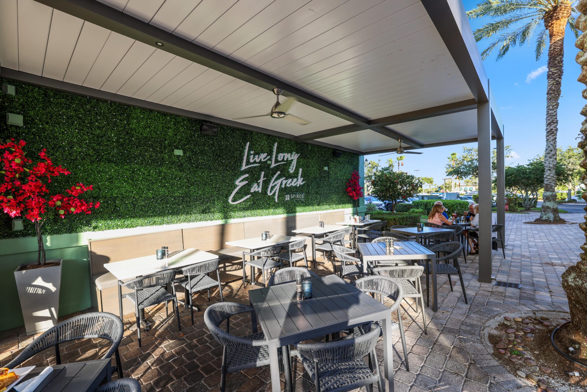 Spiro’s Taverna wanted to elevate its outdoor dining experience with a space that felt welcoming, weather-ready, and authentically Mediterranean. The restaurant’s lively corner in Port St. Lucie offered the perfect setting for al fresco dining, but the space needed reliable shade, comfort, and a design that complemented the surrounding architecture.