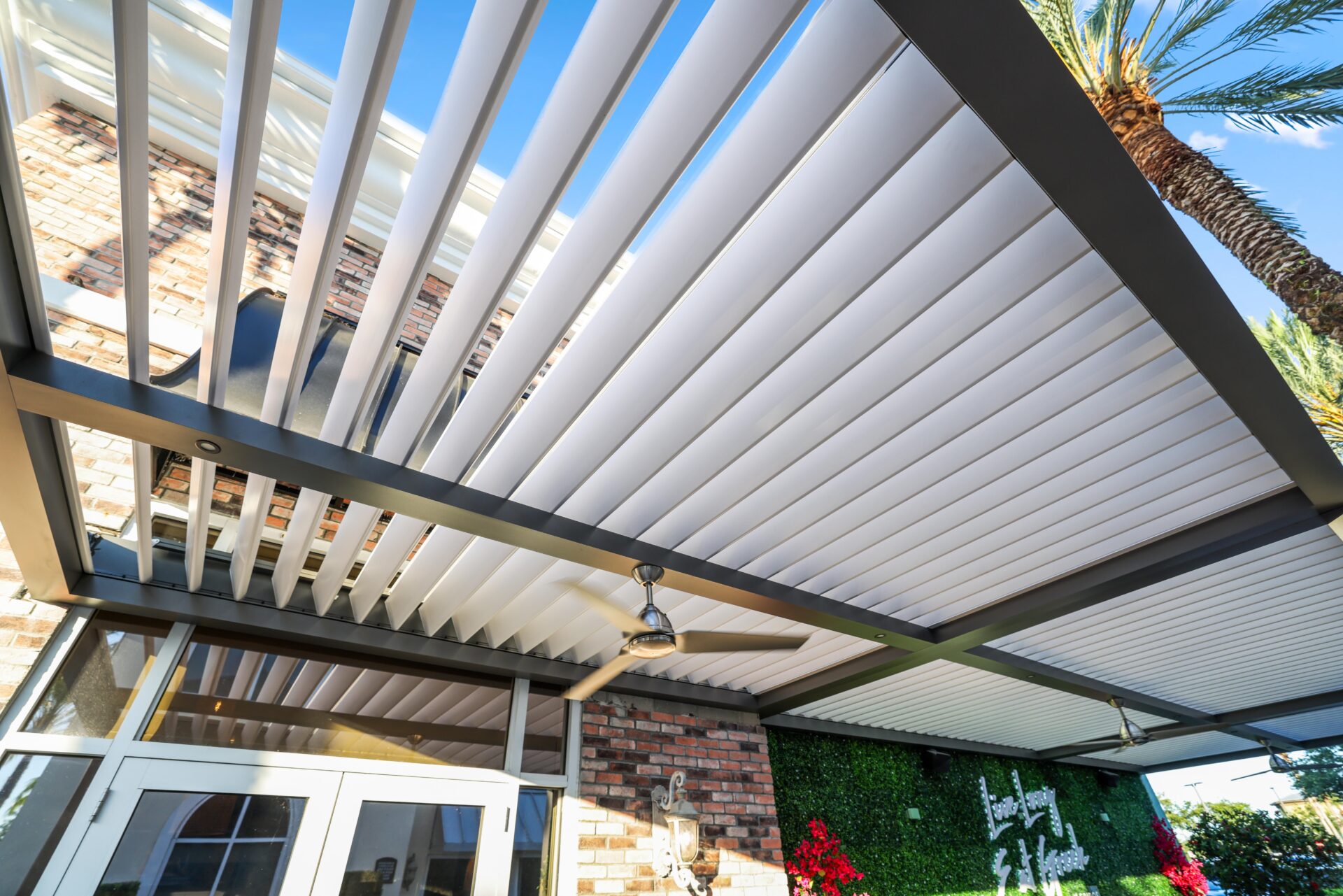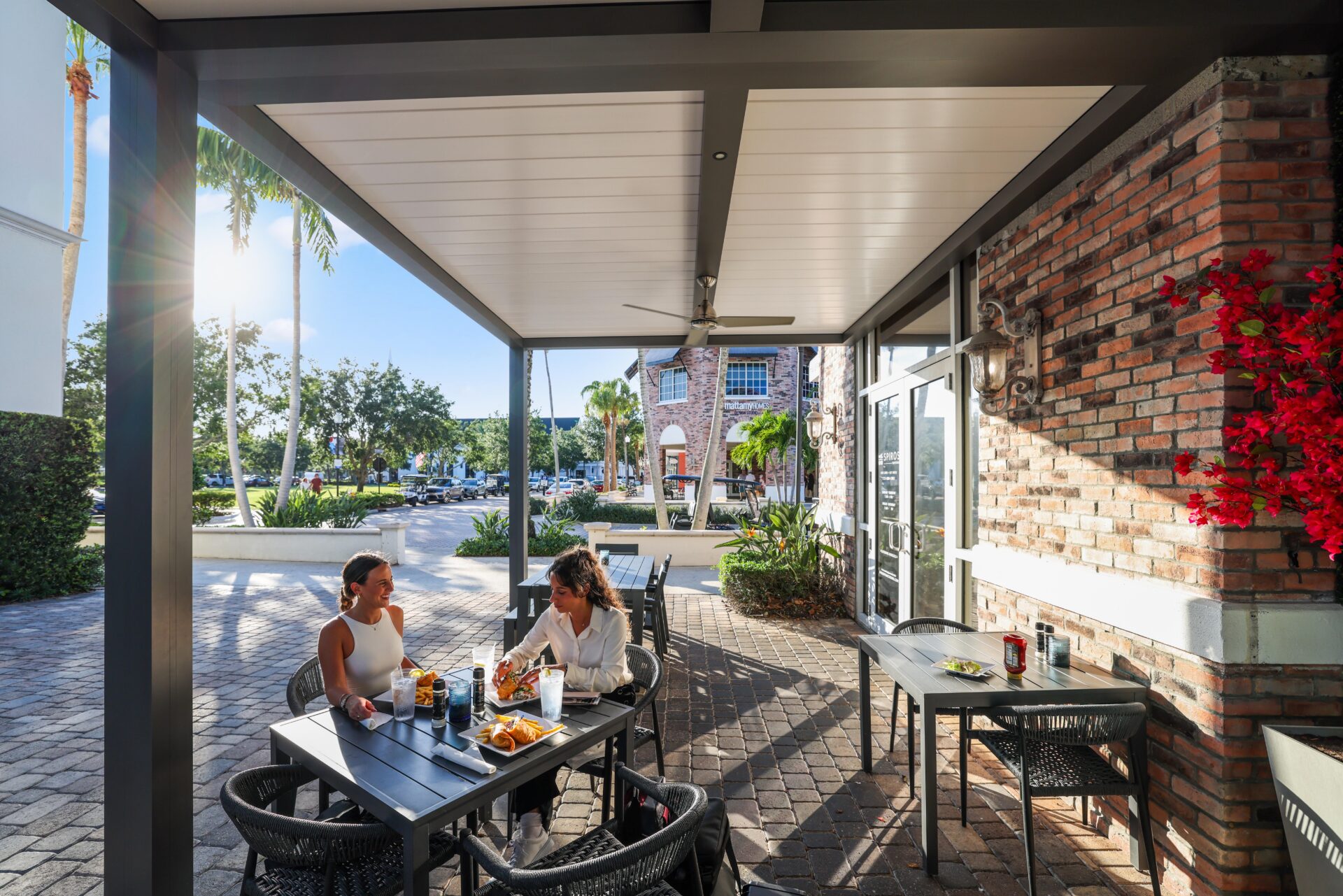 SYZYGY Global installed a site-specific engineered R-Blade pergola that now defines the restaurant’s patio with clean lines and a modern silhouette. The motorized louvers allow the team to adjust sunlight and airflow throughout the day, creating an enjoyable atmosphere during lunch rushes, evening service, and everything in between. Durable aluminum construction and concealed marine-grade stainless steel hardware ensure the structure maintains its polished look even with heavy daily use.